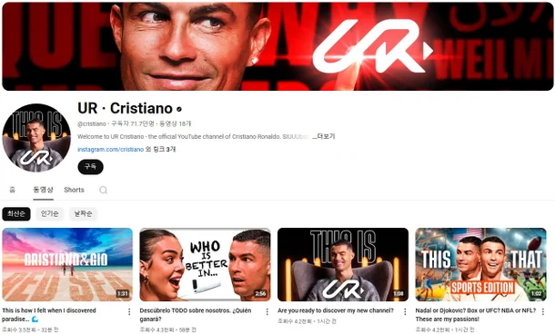 호날두가 유튜브 채널을 새로 개설하면서 새로운 기록을 세운 것입니다. 그는 채널을 개설한 지 단 90분 만에 100만 명의 구독자를 모아, 유튜브 역사상 가장 빠르게 100만 구독자를 달성한 기록을 세웠습니다. 채널에서 그는 축구 외에도 일상, 건강 관리, 비즈니스 등에 관한 콘텐츠를 공유할 계획이라고 해요.