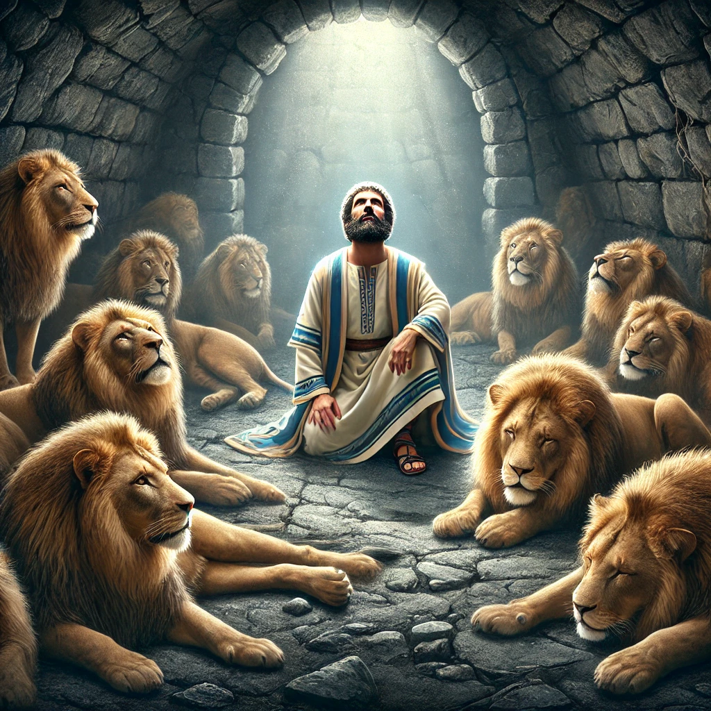 사자굴 사건(6장): 다니엘이 하루 세 번 기도하는 습관을 지키다가 사자굴에 던져지지만, 하나님께서 사자들의 입을 막아 그를 구하십니다.