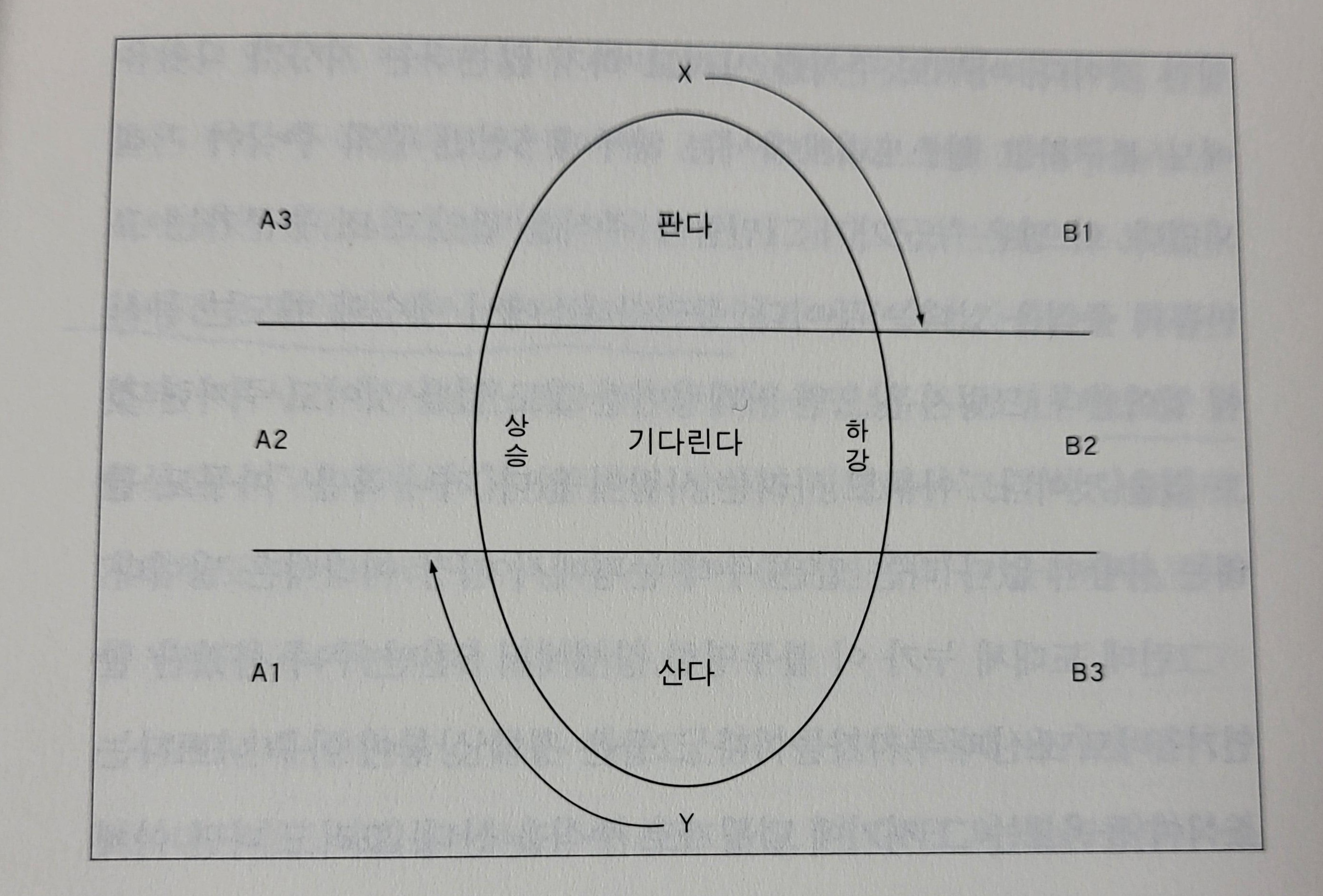 시장은 상승운동과 하강운동이 교대로 나타나서 원형으로 그려볼 수 있다. 저자는 이것을 코스톨라니의 달걀이라고 부른다.