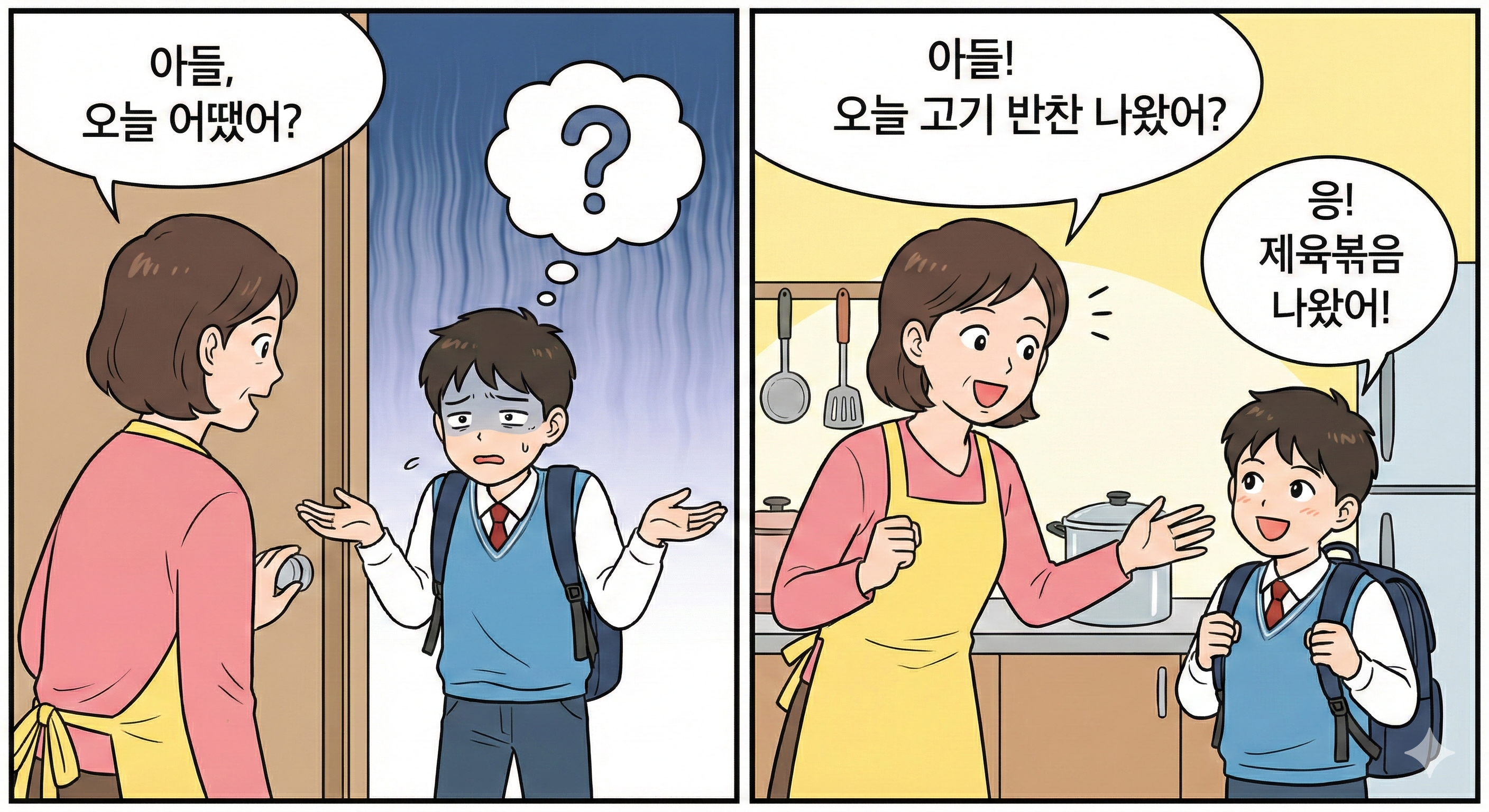 "아들! 오늘 급식에 고기 나왔어, 안 나왔어?" 🍖