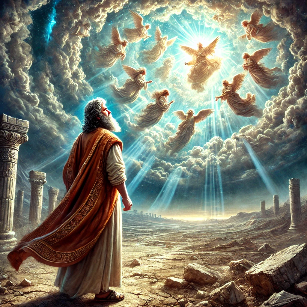 - 에스겔은 바벨론의 포로로 있던 중, 하나님께서 하늘을 열고 자신에게 나타나셨습니다. 에스겔은 하나님의 영광을 목격하는데, 그 영광은 성스러운 장면을 포함하며, "하나님의 보좌"가 등장하고, 그 주위를 둘러싼 생물들이 나타납니다. 이 생물들은 각각 네 개의 얼굴과 네 개의 날개를 가진 존재들로 묘사되며, 이는 하나님의 위엄과 신비를 나타냅니다.