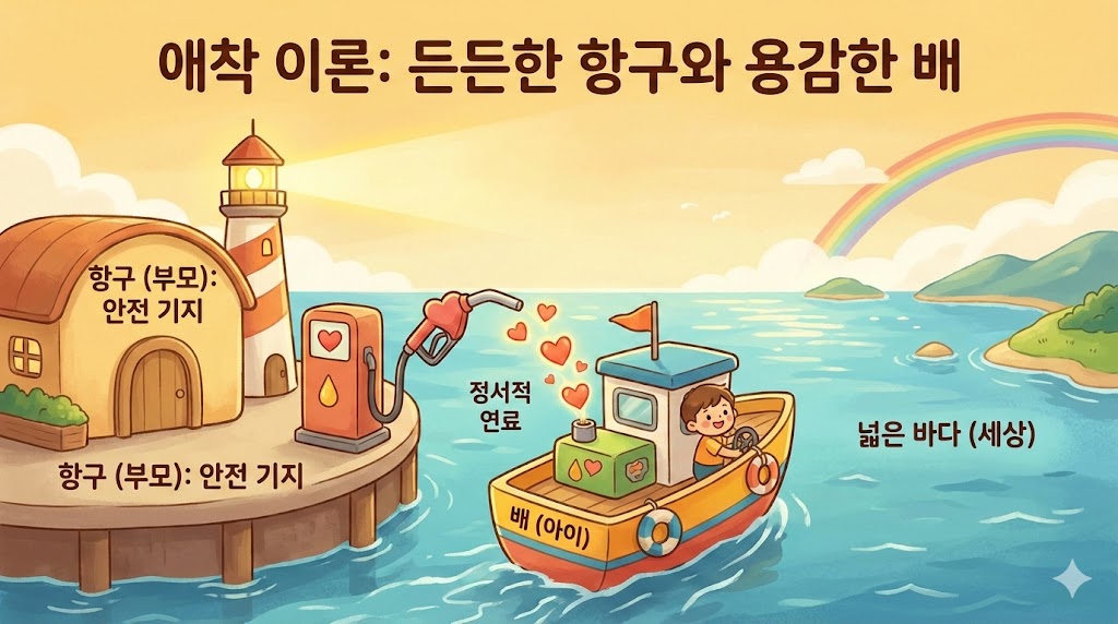 애착 이론에서는 건강한 양육자와 아이의 관계를 항구와 배에 비유합니다.