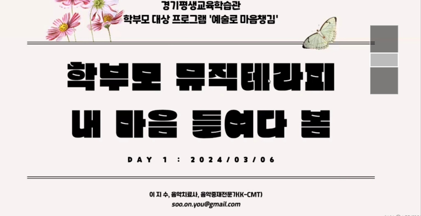 학부모 뮤직 테라피 : 내 마음 들여다봄 - 이지수 강사 (온라인 ZOOM)