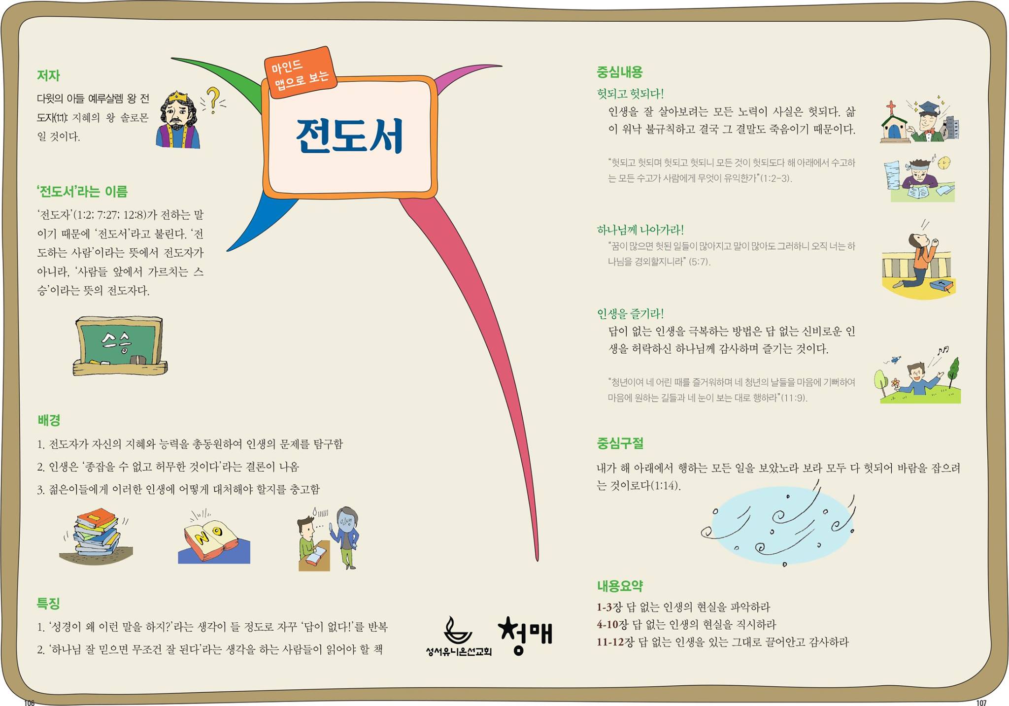 전도서는 우리에게 삶의 진정한 의미를 찾기 위해서는 세상의 것들에 의존하지 말고, 하나님의 뜻에 따라 살아야 한다는 깊은 교훈을 줍니다. 이 책을 읽다 보면, 인생의 여러 측면을 다시 생각해보게 되고, 참된 지혜가 무엇인지 고민하게 될 거예요.